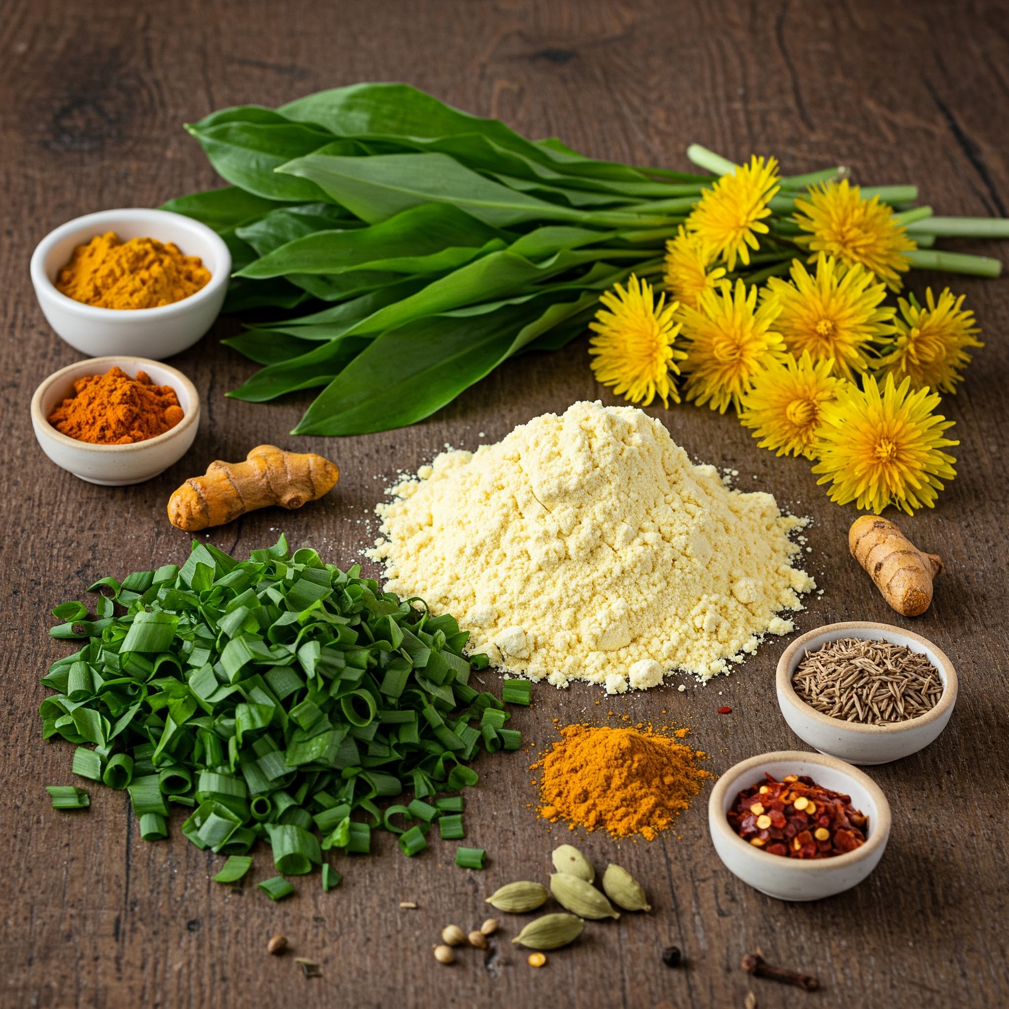 Yes, you heard that right! Those often-overlooked “weeds” in your garden are actually culinary treasures with strong medicinal properties. Dandelions are incredible good for the heart – how many pakoras can you say that about?! And of course with it being spring we’re including the wonderfully aromatic wild garlic into this recipe with its signature pungent scent. The dandelion heads add a subtle sweetness, a texture that has to be tried to believed, and a lovely golden crunch to these crispy delights.